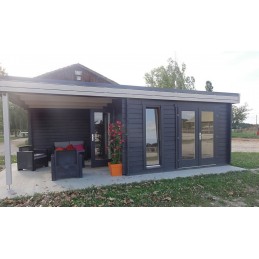 T2 living container 48m² -Terrace with 4 chairs. -Length 12m -Width 4 m -Height 3.5m -Weight: approximately 12 tons.