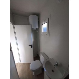 El bungalow con baño de la serie estándar AS3 corresponde a un modelo estándar equipado con una habitación compuesta por un lavabo, un inodoro, una ducha y un tragaluz abatible.