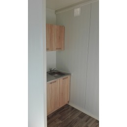 Conteneur Bureau Pavillon Bleu 18 m2, c'est un bureau adaptable à l'hiver et à l'été ,il a une cuisine et une WC. Ce bureau dispose de 6m de longueur, de 3m de largeur et d'une hauteur de 2,5 m.