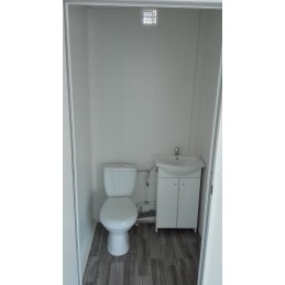 Le bungalow avec salle d'eau AS3 série standard correspond à un modèle standard équipé d'une pièce comprenant un lavabo, un WC, une douche et un vasistas entrebâillant.