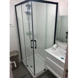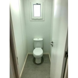 Le bungalow avec salle d'eau AS3 série standard correspond à un modèle standard équipé d'une pièce comprenant un lavabo, un WC, une douche et un vasistas entrebâillant.