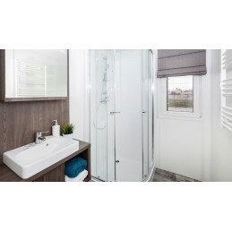 The standard series AS3 bungalow with bathroom corresponds to a standard model equipped with a room comprising a washbasin, a WC, a shower and a hinged fanlight.