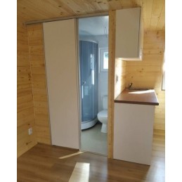 The standard series AS3 bungalow with bathroom corresponds to a standard model equipped with a room comprising a washbasin, a WC, a shower and a hinged fanlight.