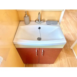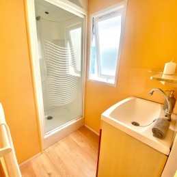 The standard series AS3 bungalow with bathroom corresponds to a standard model equipped with a room comprising a washbasin, a WC, a shower and a hinged fanlight.