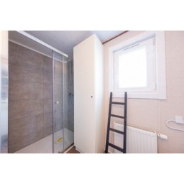The standard series AS3 bungalow with bathroom corresponds to a standard model equipped with a room comprising a washbasin, a WC, a shower and a hinged fanlight.