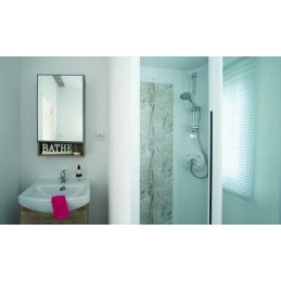 The standard series AS3 bungalow with bathroom corresponds to a standard model equipped with a room comprising a washbasin, a WC, a shower and a hinged fanlight.