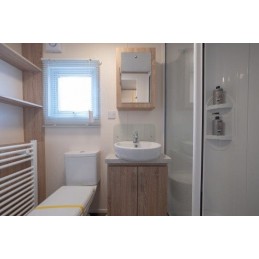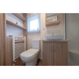The standard series AS3 bungalow with bathroom corresponds to a standard model equipped with a room comprising a washbasin, a WC, a shower and a hinged fanlight.