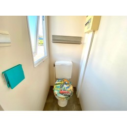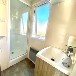 O bungalow série standard AS3 com casa de banho corresponde a um modelo standard equipado com uma divisão composta por lavatório, sanita, duche e clarabóia basculante.