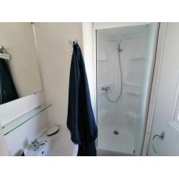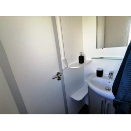O bungalow série standard AS3 com casa de banho corresponde a um modelo standard equipado com uma divisão composta por lavatório, sanita, duche e clarabóia basculante.