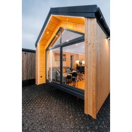 O bungalow série standard AS3 com casa de banho corresponde a um modelo standard equipado com uma divisão composta por lavatório, sanita, duche e clarabóia basculante.
