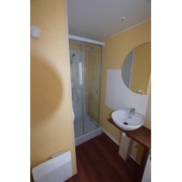 O bungalow série standard AS3 com casa de banho corresponde a um modelo standard equipado com uma divisão composta por lavatório, sanita, duche e clarabóia basculante.
