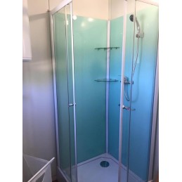O bungalow série standard AS3 com casa de banho corresponde a um modelo standard equipado com uma divisão composta por lavatório, sanita, duche e clarabóia basculante.