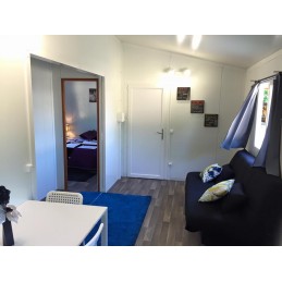 Contentor habitável T2 com uma dimensão de 48m2, esta moradia encontra-se totalmente mobilada e equipada