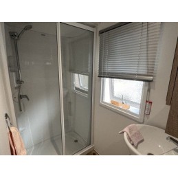 O bungalow série standard AS3 com casa de banho corresponde a um modelo standard equipado com uma divisão composta por lavatório, sanita, duche e clarabóia basculante.