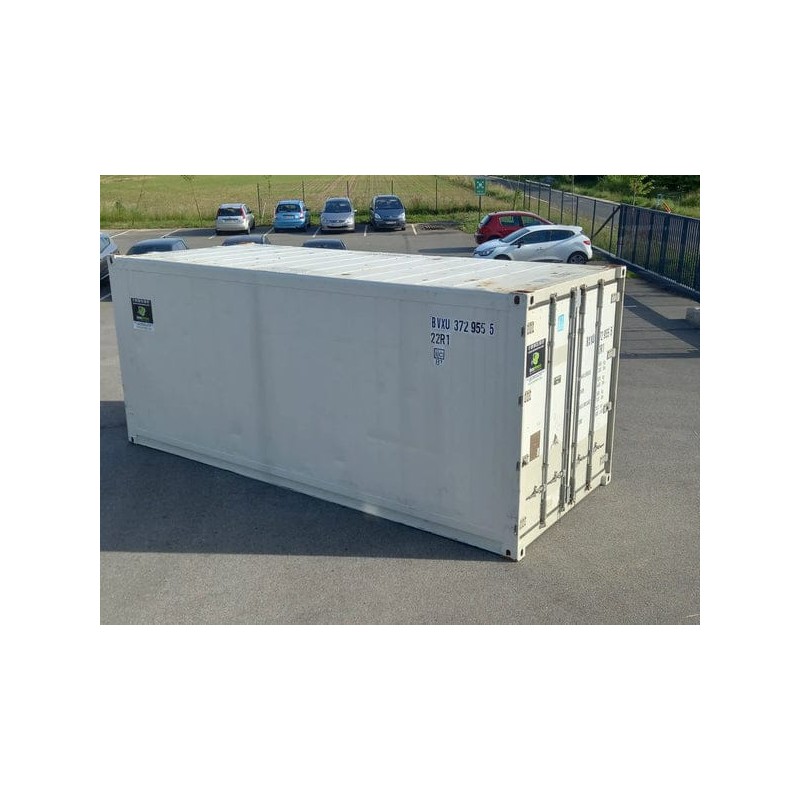 O contentor refrigerado de 20 pés usado está equipado com uma unidade de refrigeração eficiente, concebida para distribuir o ar refrigerado de forma constante e uniforme pelo chão. Este avançado sistema de refrigeração permite que os produtos alimentares, farmacêuticos, hortícolas ou cosméticos sejam armazenados ou transportados sob condições controladas de temperatura e humidade.